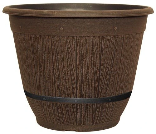 The Cask planter has a classic pattern and a unique and lovely hand painted finish in chestnut effect, this 35cm planter is part of the Cask range which boasts various sizes and shapes to match.