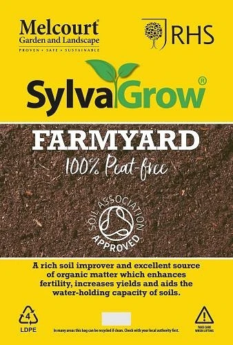 Farmyard from the Melcourt Sylvagrow range (previously knows as Melcourt Farmyard Manure). Farmyard is an organic peat free soil improver which suppresses weeds, adds nutrients and improves water retention. Used by home gardeners and professional landscapers to improve soil condition and increase organic matter. Mulch into beds & borders and around trees and shrubs. RHS endorsed.