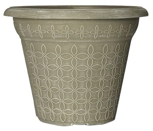 The Mod Flora planter has a classic pattern and a unique and lovely hand painted finish in a powdered taupe effect, this 34cm planter is part of the Mod Flora range which boasts various sizes and shapes to match.